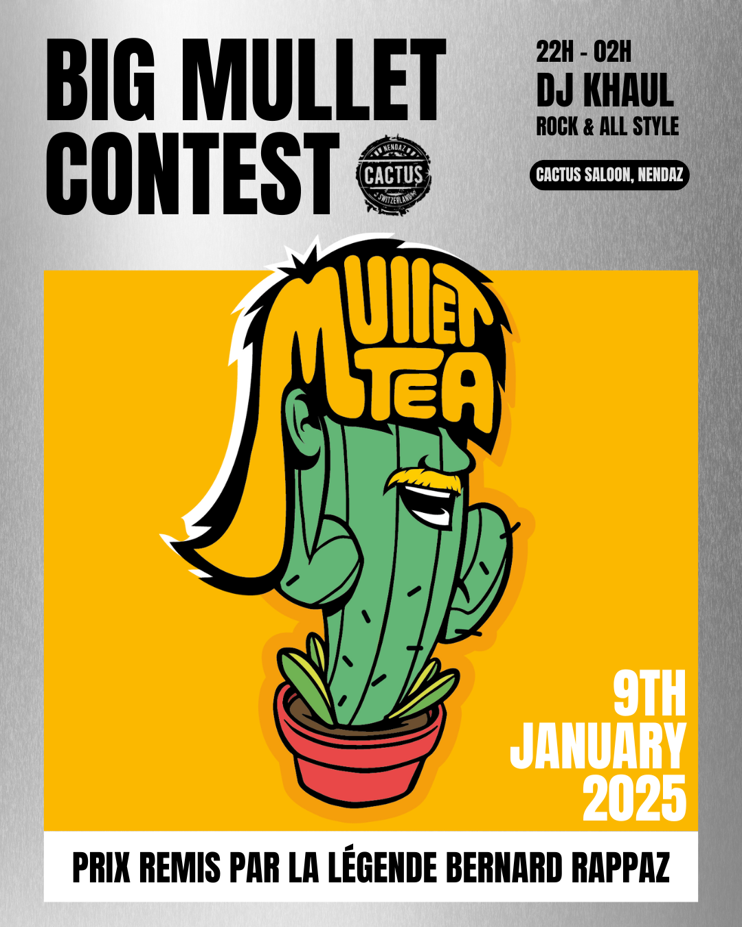 Par respect pour cette journée de recueillement,👉 le Big Mullet Contest et le show avec Bernard Rappaz prévus le 09.01.2026 au Cactus Saloon & Cantina sont reportés. 🌵 L’événement n’est pas annulé.
